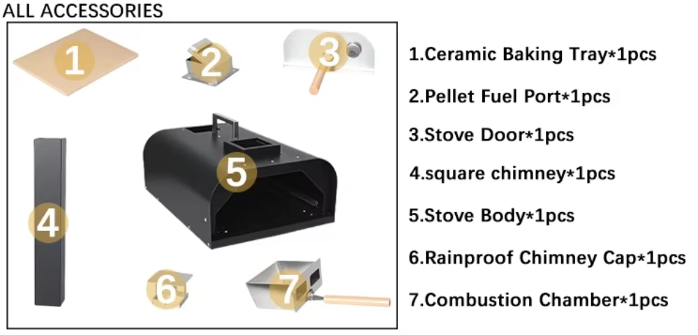 8. Eksiksiz aksesuar seti dahildir: Açıldığında kullanıma hazır standart pizza spatulası, egzoz borusu, taş levha vb. - ek satın alma gerekmez.